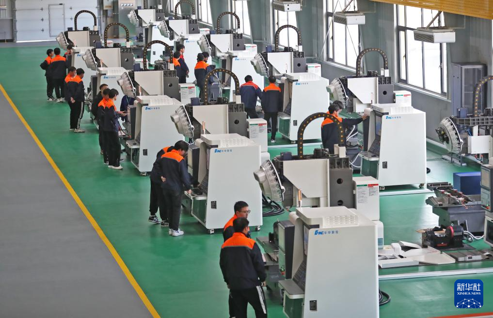 12月6日,沈工-華中數控“一帶一路”訂單班同學在實訓基地操作數控五軸加工中心。新華社記者 楊青 攝