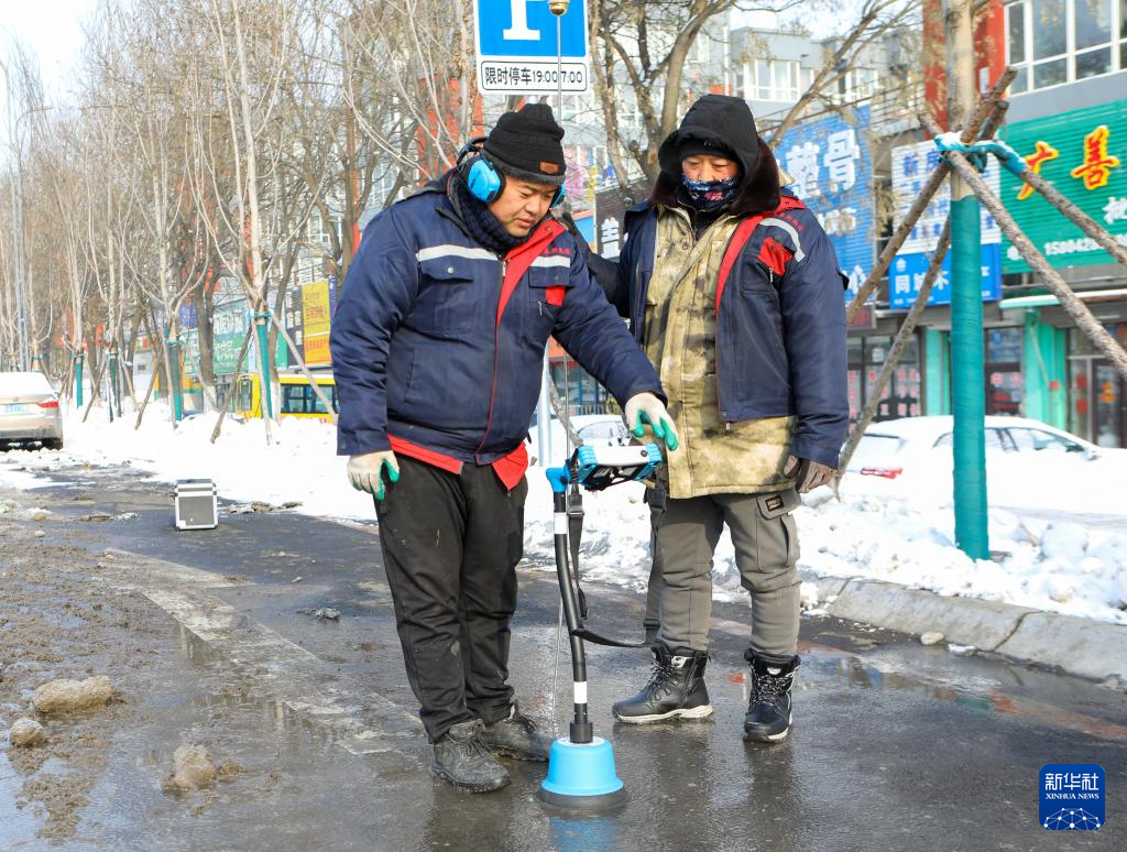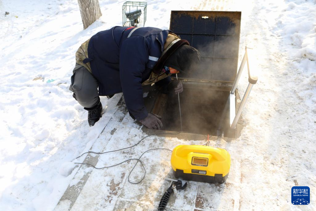 12月19日,沈陽東泰熱源的工作人員在沈陽市沈北新區一街道巡查供熱管網。新華社記者 陳為 攝