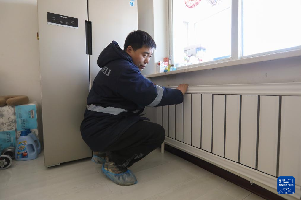 12月18日,沈陽天潤熱力的工作人員在沈陽市蘇家屯區一居民家中了解室內供暖情況。新華社記者 陳為 攝