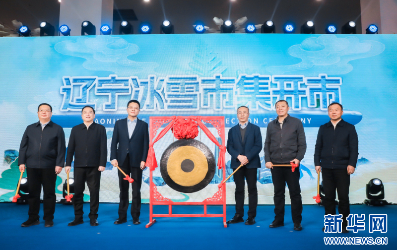 隨后,與會嘉賓上臺,共同見證“遼寧冰雪市集”敲鑼開市。