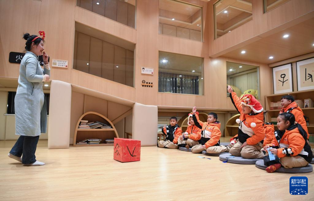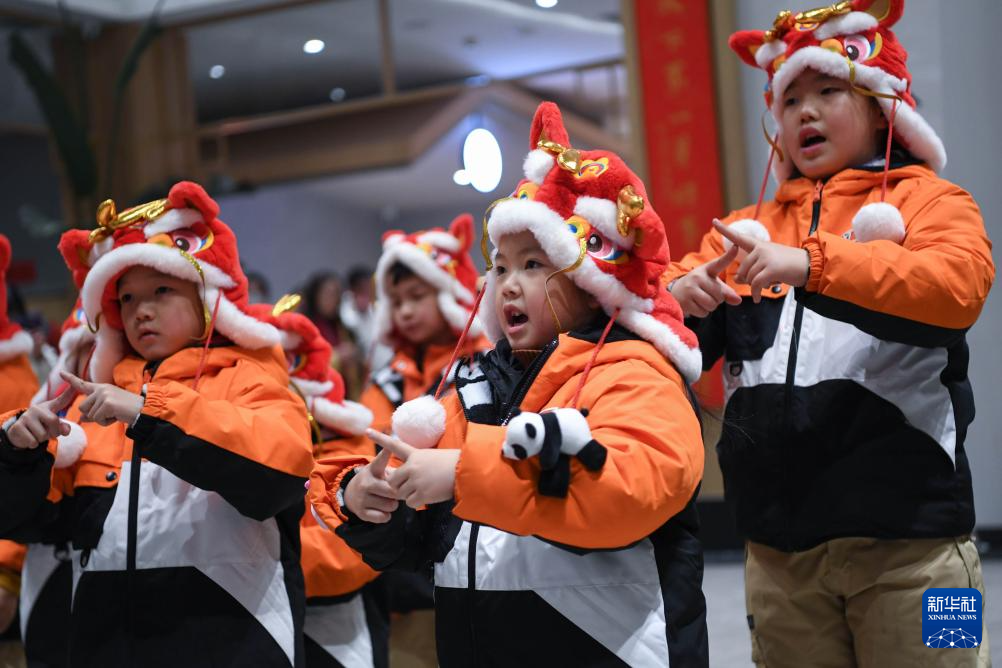 1月7日,“小沃柑”在沈陽老北市漢字主題書房表演舞蹈。新華社記者 龍雷 攝