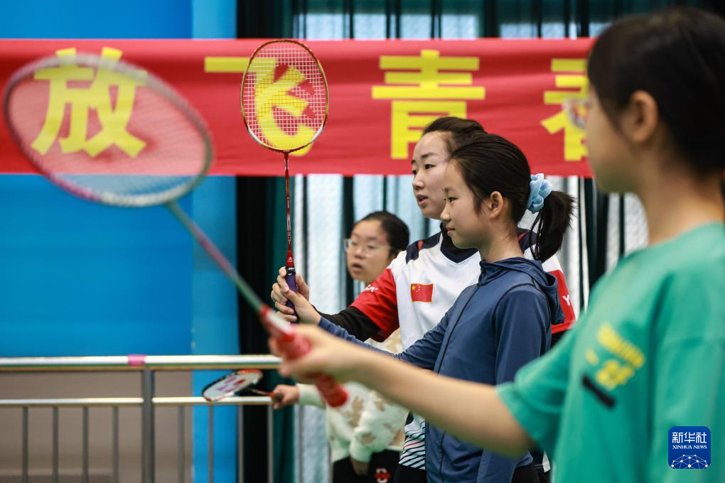 1月15日,學生們在教練指導下練習羽毛球。新華社記者 楊青 攝pagebreak