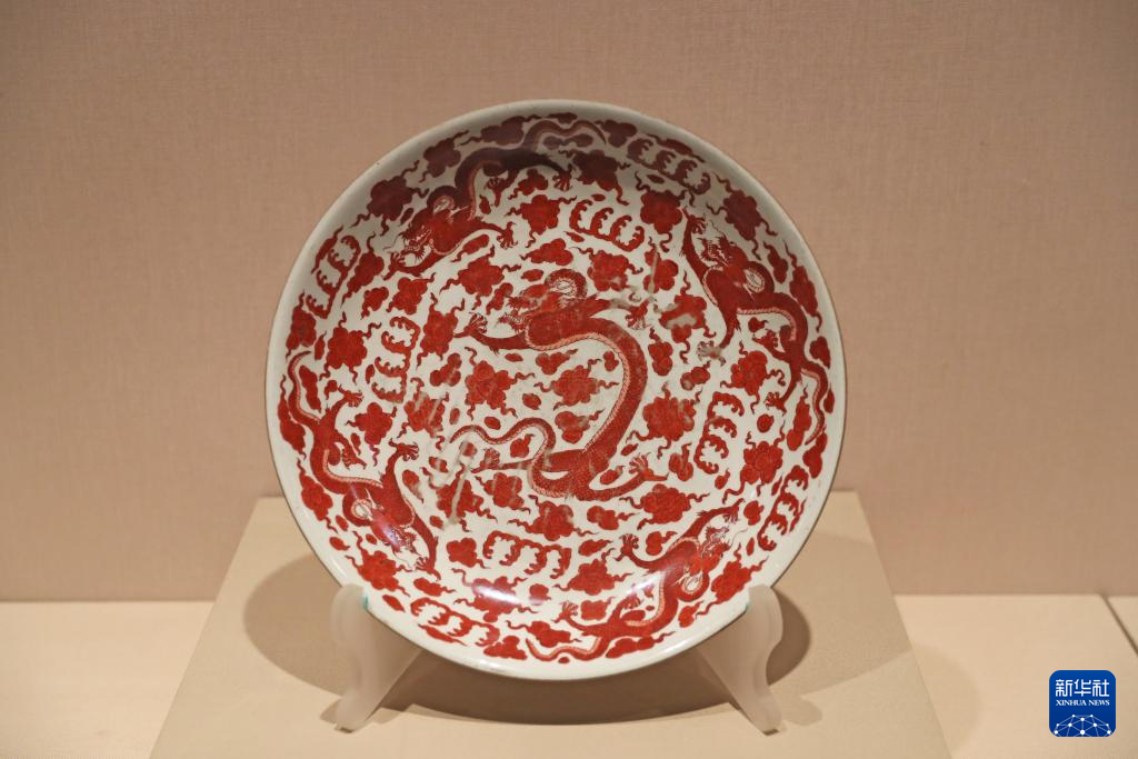 2月2日在遼寧省博物館拍攝的抹紅云龍紋盤。新華社記者 楊青 攝pagebreak