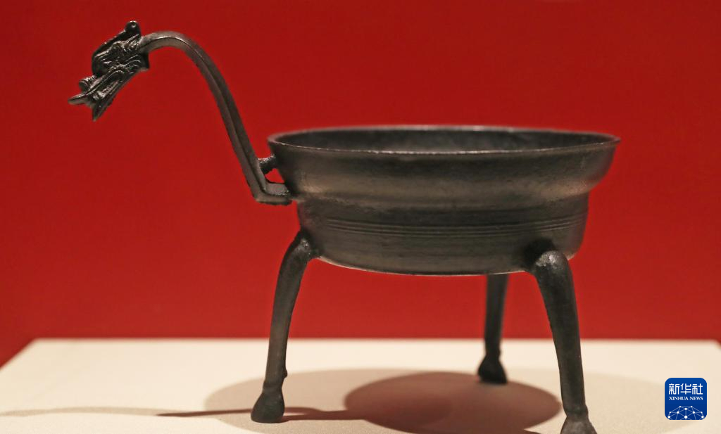 2月2日在遼寧省博物館拍攝的龍首銅鐎斗。新華社記者 楊青 攝