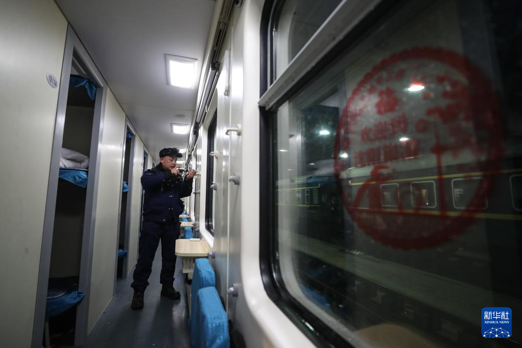 2月5日,田鶴在一列普速列車內進行檢修工作。新華社記者 潘昱龍 攝pagebreak