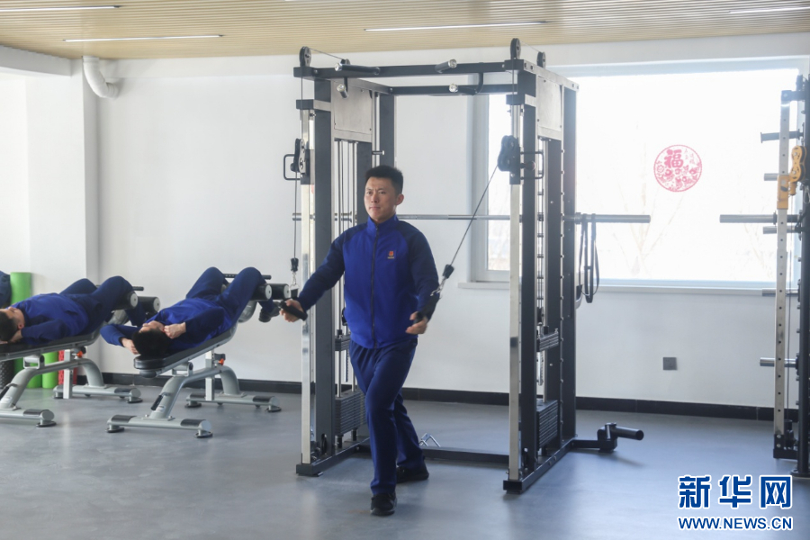 圖為馬總兵北街消防救援站的消防員們進行體能訓練。新華網許志康攝