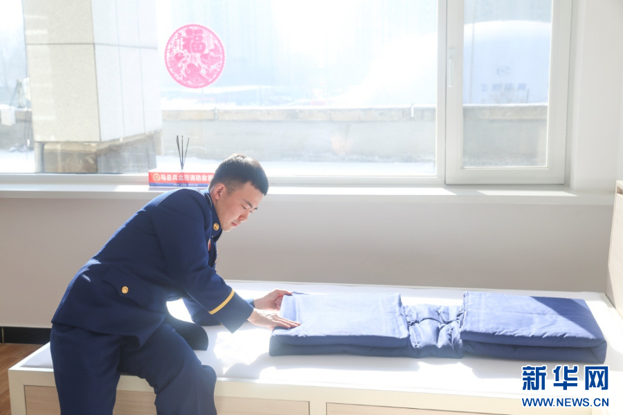 出早操,進行體能訓練……30分鐘后,消防員們收操回到宿舍開始整理內務,打掃衛生。宿舍里,被子被疊成了“豆腐塊”,水杯、牙刷、臉盆擺放得整整齊齊,干凈的地面一塵不染……處處映襯著消防員們一絲不茍的生活作風。