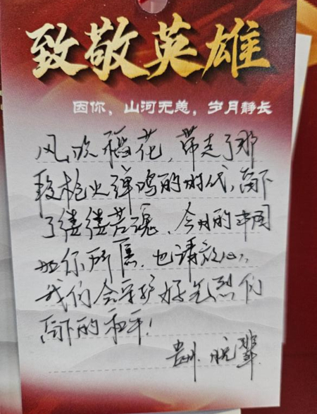 新華網沈陽2月16日電(記者于也童)近日,沈陽抗美援朝烈士陵園烈士紀念館內新增一面留言墻,春節期間,留言墻上掛滿了全國多地參觀群眾想對志愿軍先烈說的話,五湖四海的思念匯聚在這里。