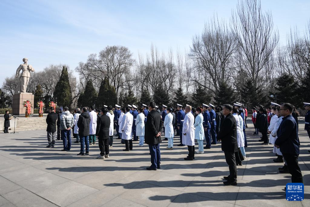 這是3月4日在遼寧省撫順市雷鋒紀念館廣場拍攝的緬懷雷鋒同志活動現場。新華社記者 潘昱龍 攝
