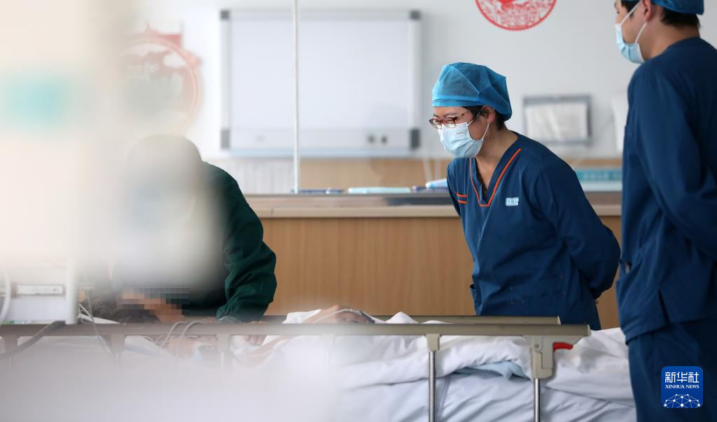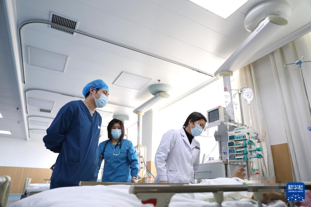 3月7日一早交接班時,曾艷紅在ICU病房內查看患者病情。新華社記者 姚劍鋒 攝pagebreak