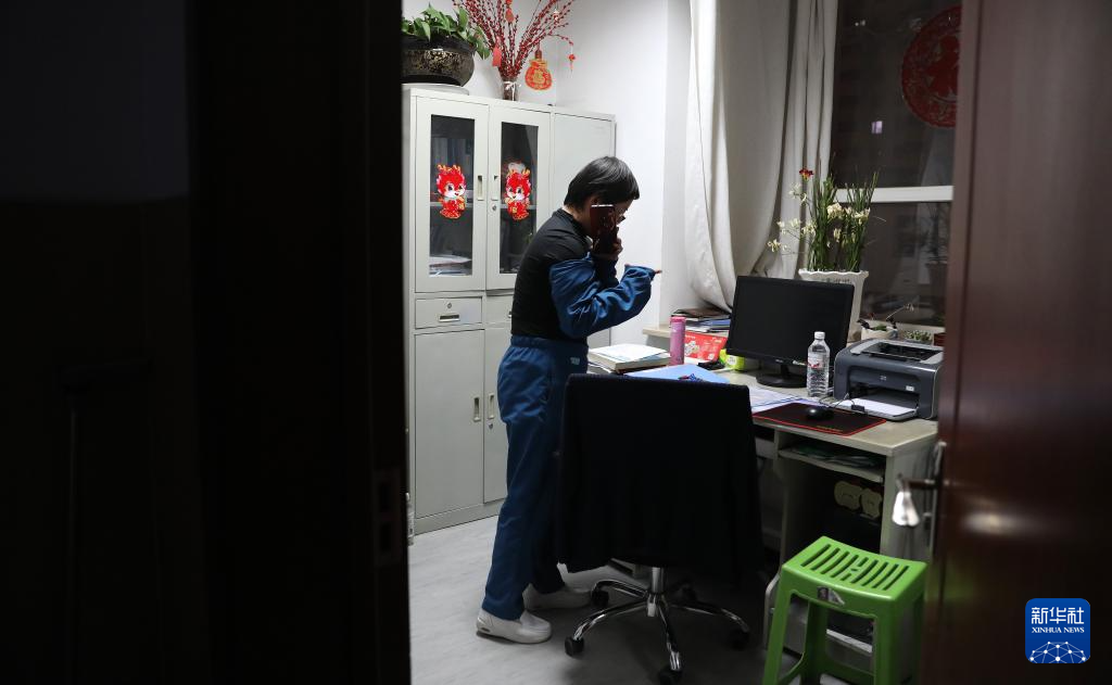 3月5日晚上,曾艷紅接到醫院緊急通知,一名產婦在術中大出血,正在進行搶救,將轉到ICU。曾艷紅匆忙從家中趕往醫院,在辦公室一邊穿醫護服一邊接聽手術室電話。新華社記者 姚劍鋒 攝pagebreak