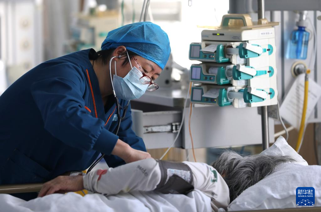 3月7日,曾艷紅在ICU病房內查看一名剛進入ICU的危重患者的體征。新華社記者 姚劍鋒 攝