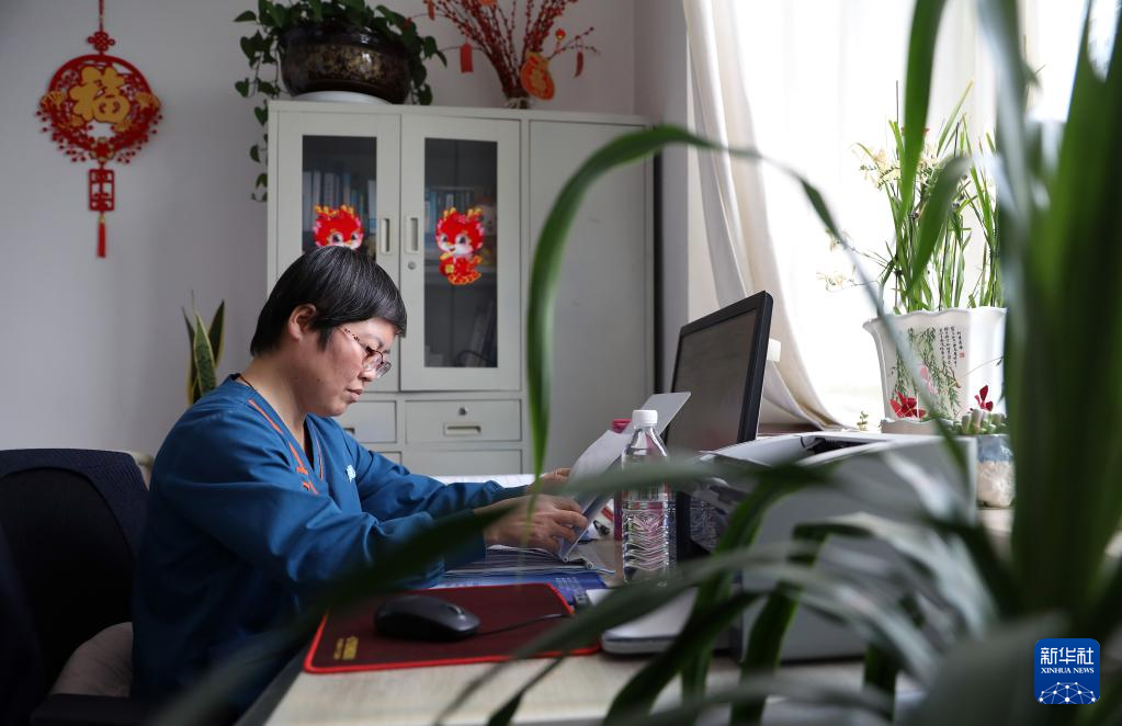 3月5日,曾艷紅在自己家中觀看有關重癥監護的網課學習資料。新華社記者 姚劍鋒 攝pagebreak