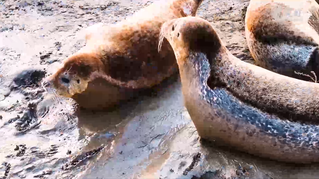隨著氣溫回暖、海冰開化,“旅居”在遼寧省盤錦市遼東灣海域的西太平洋斑海豹進入活躍期。近一周內,每天都能觀測到超200只西太平洋斑海豹在灘涂上曬太陽。