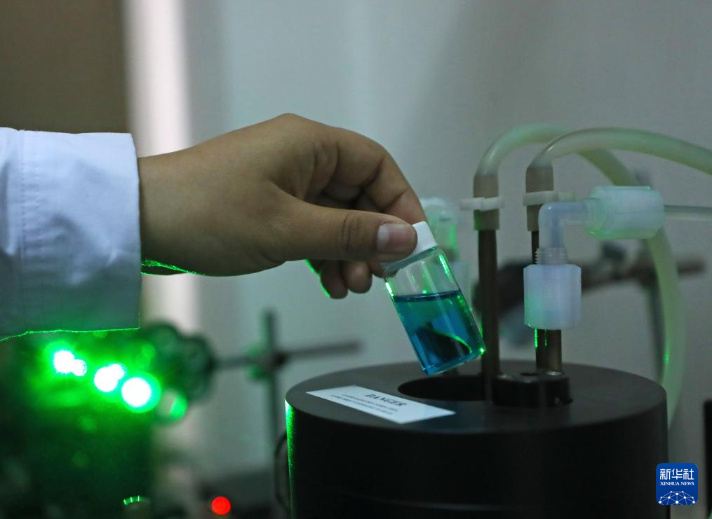 4月3日,在位于沈陽農業大學的土肥高效利用國家工程研究中心實驗室,工作人員用廣角度動態/靜態激光散射儀監測土壤顆粒凝聚過程。新華社記者 楊青 攝pagebreak
