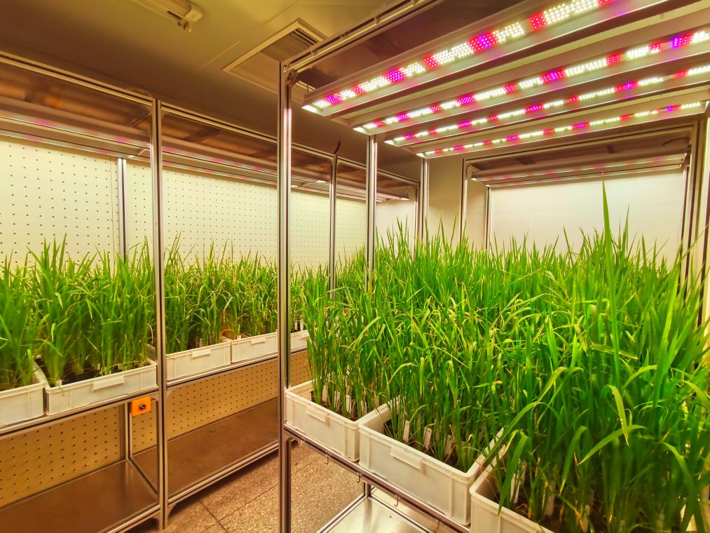 水稻研究所所長鄭文靜指著栽培架頂部的LED光源向記者介紹,這種采用定制光譜的LED光源可以為水稻不同生育期提供最佳的光環境。同時,植物工廠內部的環境要素,如光照、溫度、濕度、二氧化碳濃度等都受到精準調控,為水稻各生育階段提供最佳生長環境。