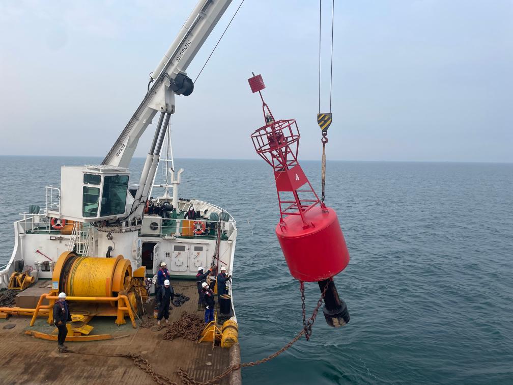 據介紹,此次換標作業涉及莊河港、長興島港、丹東港大東港區等水域。工作人員將轄區內上年度冬季設置的冰期燈浮標更換成標體更大的、直徑為2.4米的柱形燈浮標,其射程達4海里,目視效果得到極大改善。