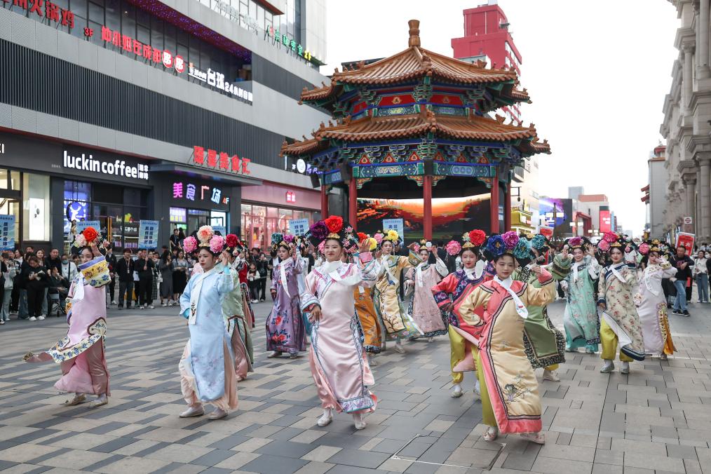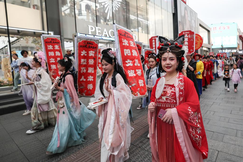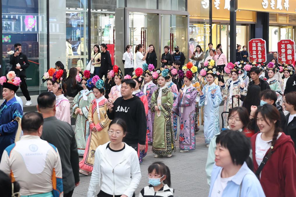 新華網沈陽4月28日電 (記者 潘昱龍)4月27日,一支身著古裝服飾,與路人熱情互動的巡游隊伍在沈陽市中街引起市民駐足拍照、互動。這些演員來自于沈陽市大東區“主角兒古風主題樂園”,巡游活動中他們與市民、游客熱情互動,還現場為大家表演精心設計的舞蹈?!爸鹘莾汗棚L主題樂園”是一家坐落在沈陽大東區龍之夢商圈的沉浸式主題樂園。這里為游客提供一系列國潮古風沉浸式角色扮演和大型娛樂項目互動體驗游戲,讓游客們能夠身臨其境地穿越時空,感受到做“主角兒”的滋味。遼寧兩個舞蹈作品《簪花仕女》《清風徐來》在網絡爆火,五一期間“主角兒古風主題樂園”結合舞蹈中的元素,設計了萬人簪花節的活動,結合室內大型娛樂項目設施,或將成為沈陽五一期間旅游打卡新去處。