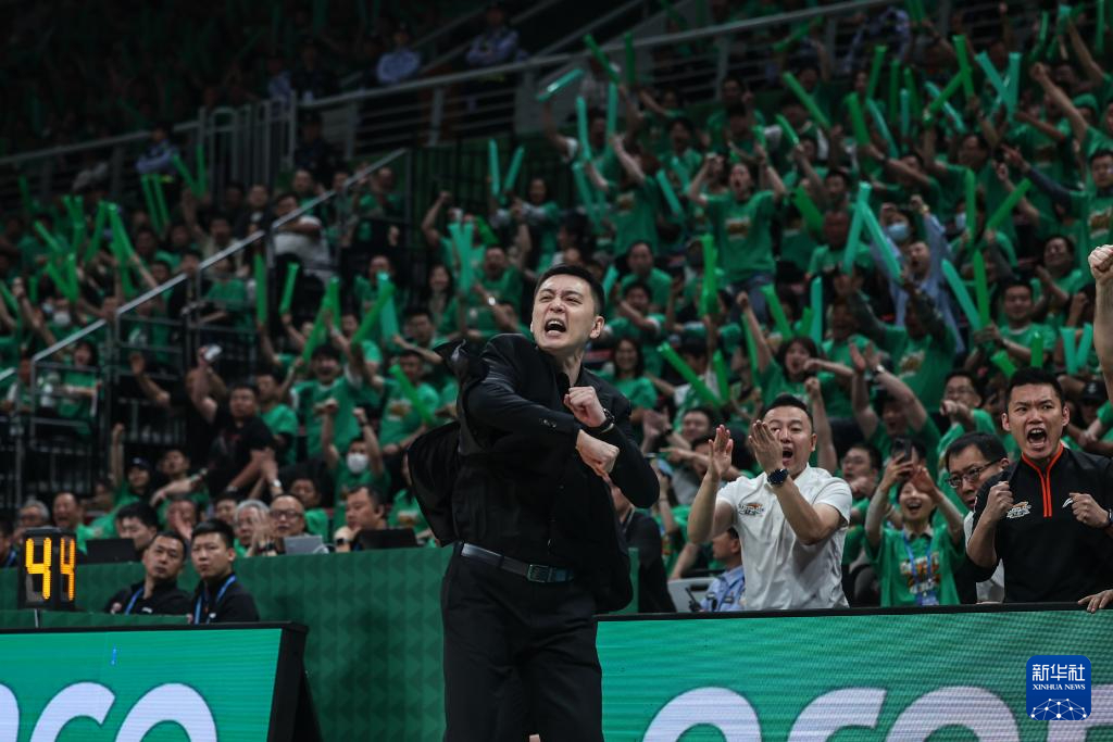 5月11日,遼寧隊主教練楊鳴在比賽中慶祝。新華社記者 潘昱龍 攝