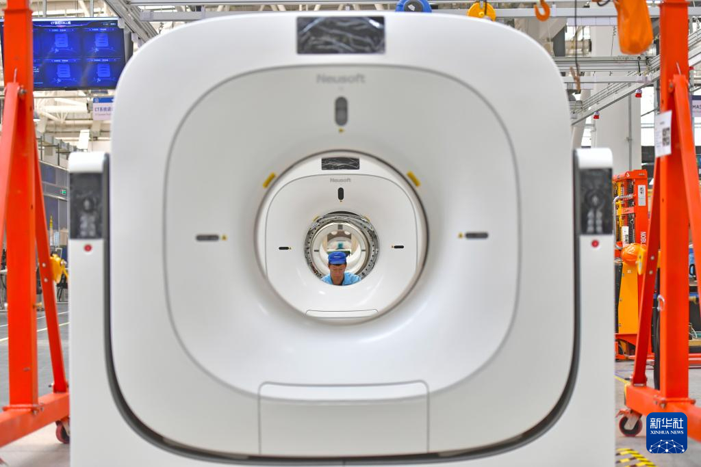 5月22日,東軟醫療系統股份有限公司員工對CT機進行出廠前檢查。新華社記者 楊青 攝pagebreak