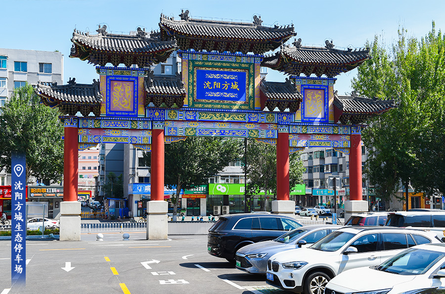 在城墻旁聳立的“沈陽方城”牌樓是沈陽方城文化旅游區的北入口,穿過此牌樓,就來到了生態停車場。據了解,該停車場可容納9輛大巴車和43輛小型車,外地游客停好車,可由此進入沈陽方城,直達游客中心。