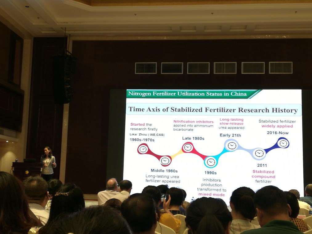 張麗莉在第十七屆世界肥料大會上作報告。(照片由受訪者提供)