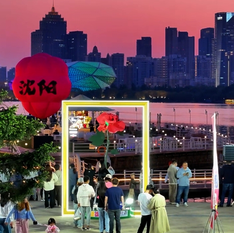最近,不少游客來到沈陽外灘乘坐渾河游船、打卡巨型玫瑰,開啟休閑慢節奏、沉浸微旅行。