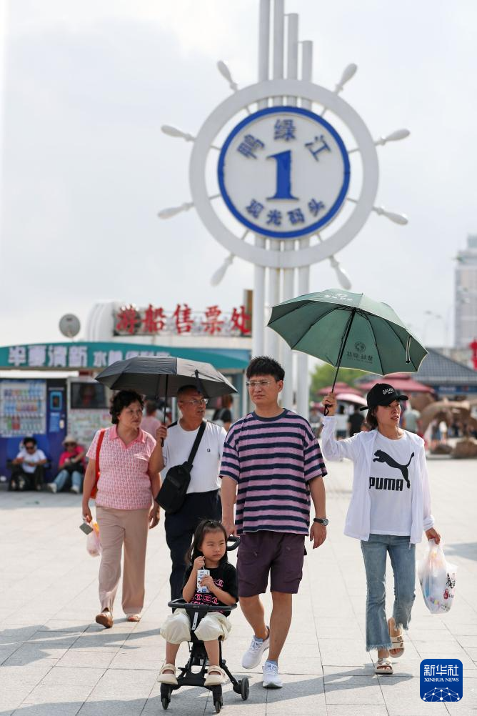 8月2日,游客在鴨綠江畔游覽。新華社記者 龍雷 攝