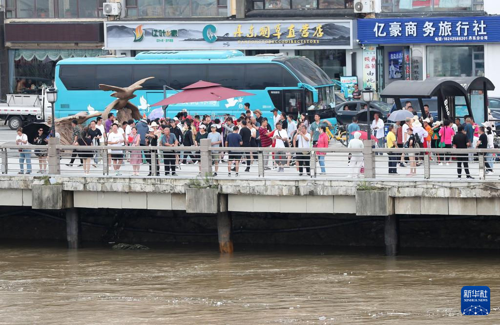 當日,位于遼寧省丹東市的鴨綠江畔人頭攢動,隨著鴨綠江水勢回落,沿江道路恢復通車,許多游客來這里參觀游覽。pagebreak