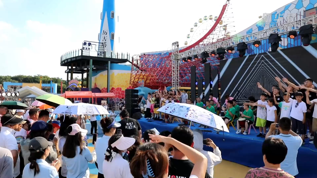 8月22日傍晚,來到大連圣亞海洋世界游玩的游客紛紛駐足鯨魚廣場。在這里,一場以“‘音’你同在,愛滿大連”為主題的專為孤獨癥孩子舉辦的少兒音樂節正在上演。舞臺上,寶兒姐的鏟鏟樂隊、橙樂團、Neocorner樂隊、悅動脈沖樂隊等10余支少兒樂隊輪番登臺演唱。