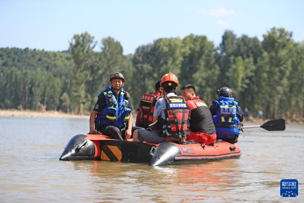 8月23日,在葫蘆島市建昌縣黑山科鄉,救援隊員乘坐橡皮艇去救援受災群眾。