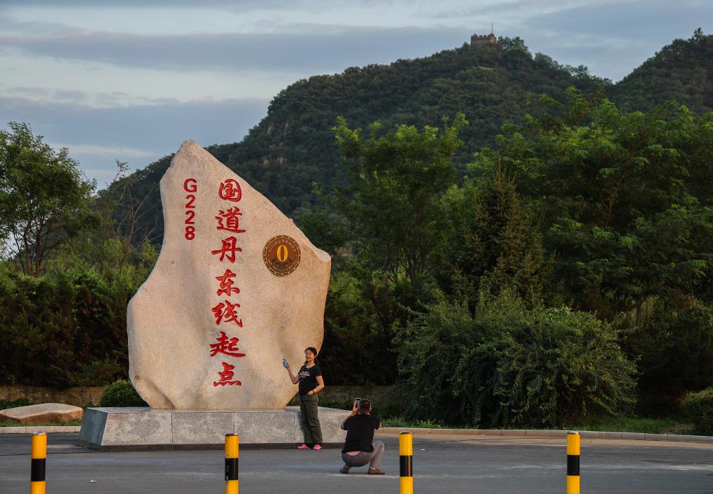 9月3日,游客在G228國道0公里紀念碑拍照留念。