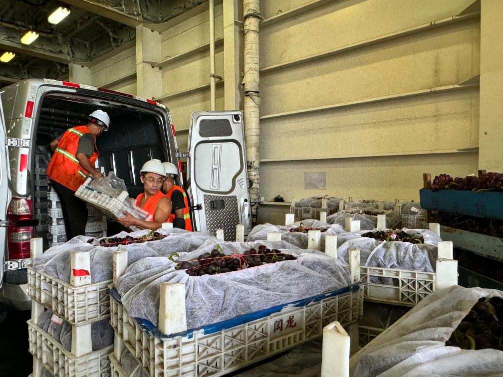 新華網沈陽9月12日電(劉嘉、戴少毅)12日中午,中鐵渤海3號渡船汽車艙內,工作人員小心翼翼地將上萬斤葡萄從貨車車廂搬運至渡船散貨區。煙臺市地處膠東半島,暖溫帶季風氣候賦予其葡萄種植得天獨厚的地理、氣候和土壤優勢,蓬萊作為煙臺市葡萄種植重要區域,產出的葡萄果肉飽滿、色澤艷麗。