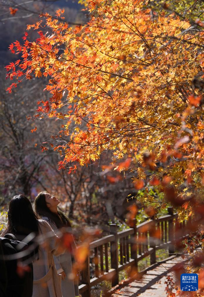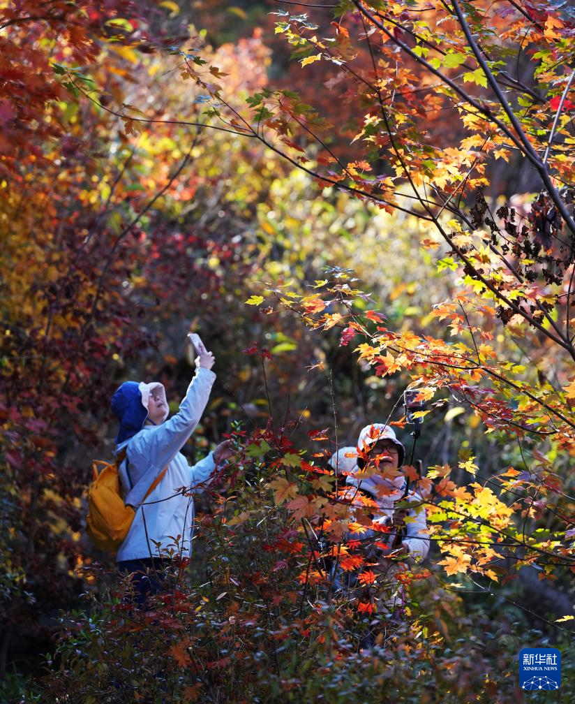 10月16日,游客在遼寧本溪的老邊溝風景區游玩。