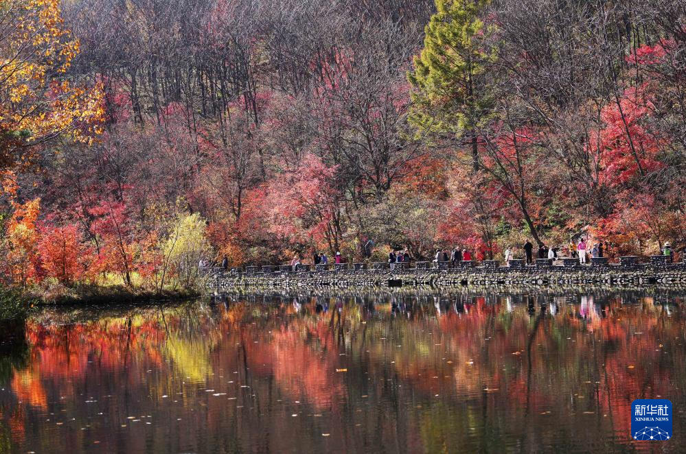 遼寧本溪的大石湖風景區的金秋景色(10月16日攝)。
