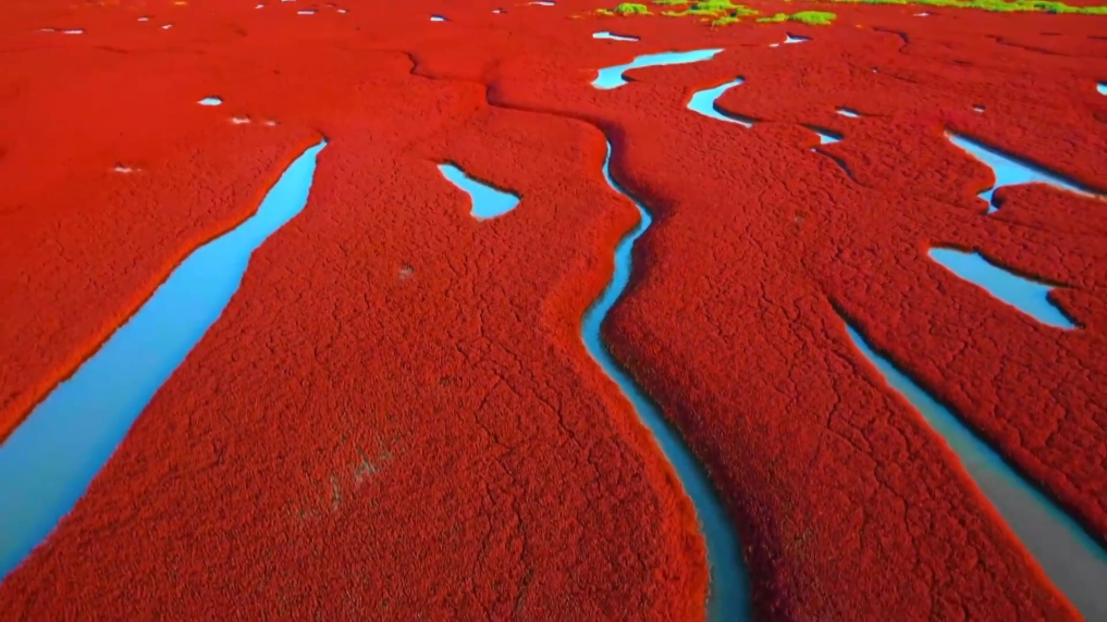 每到秋季,在遼寧省盤錦市,有一片被紅色覆蓋的海岸線,沙與土、鹽與堿,在這里有機結合。特殊的環境所孕育出的堿蓬草,蓋滿整個灘涂。這塊由大片堿蓬草組成的濕地,被列入《中國國家地理》雜志評出的“中國最美沼澤濕地”之一。