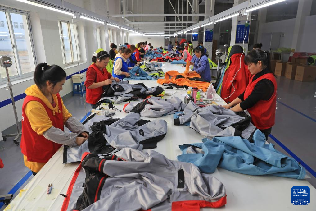 在遼寧飛馬特實業有限公司,工作人員在對沖鋒衣進行出廠檢查(11月15日攝)。