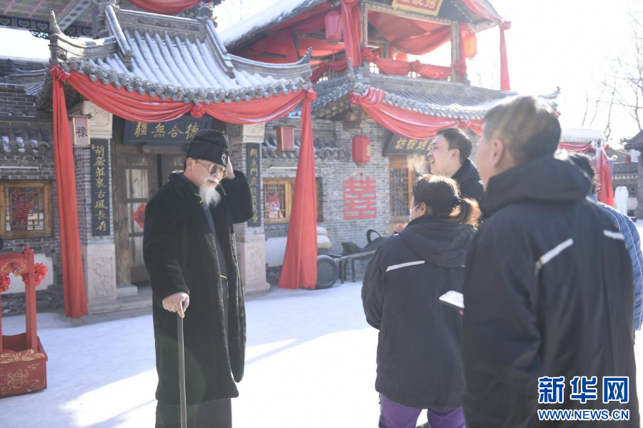 圖為葫蘆古鎮內游客和古鎮演員一起體驗東北大秧歌