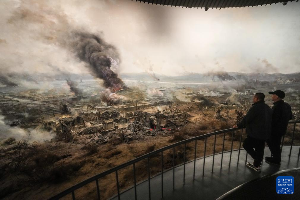 4月1日,觀眾在遼沈戰役紀念館內觀看全景畫《攻克錦州》。