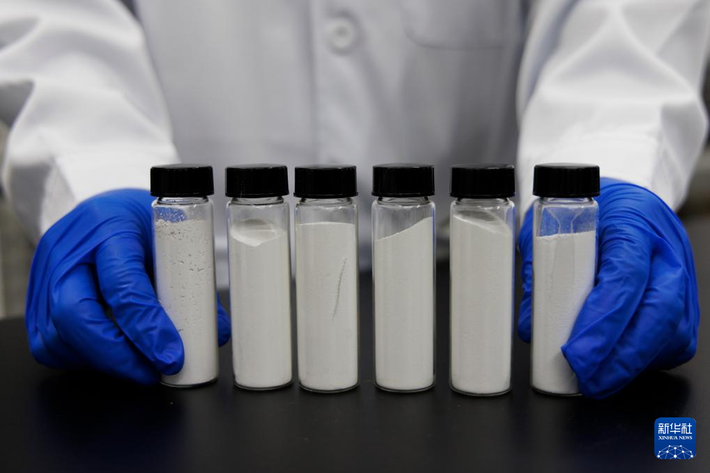4月3日,在中國科學院金屬研究所沈陽材料科學國家研究中心實驗室,科研人員展示改造后的半導體光催化材料二氧化鈦。