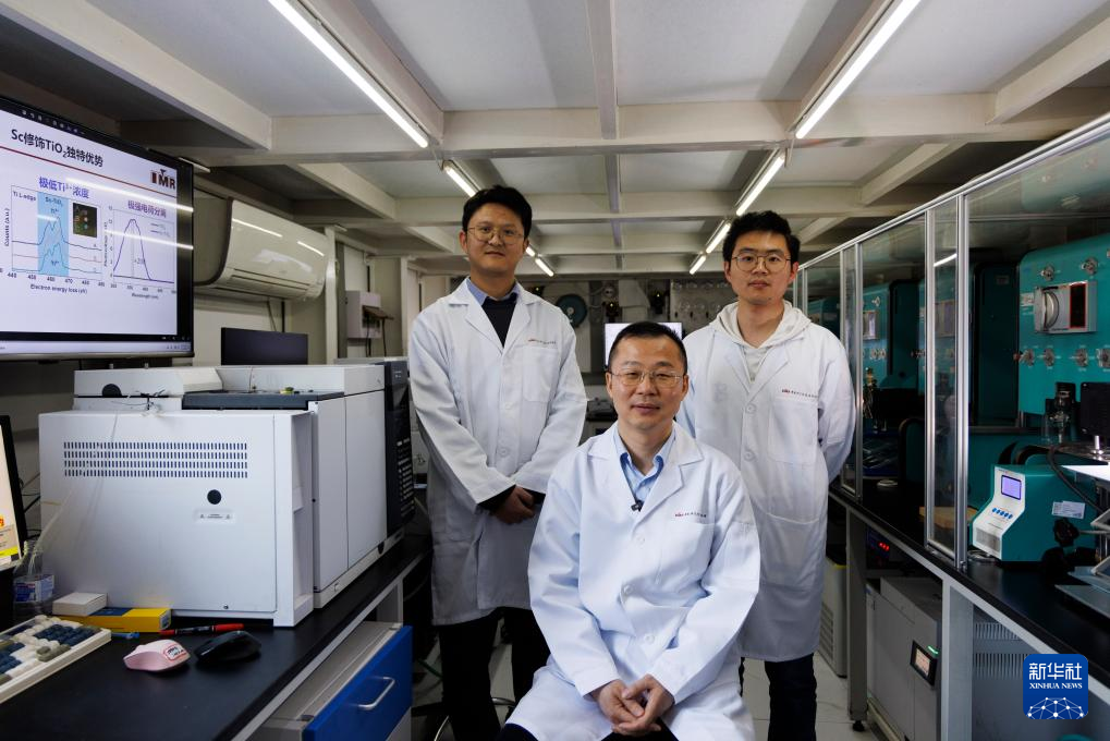 4月3日,在中國科學院金屬研究所沈陽材料科學國家研究中心實驗室,研究員劉崗(中)、副研究員康宇陽(左)、博士研究生秦飛合影。