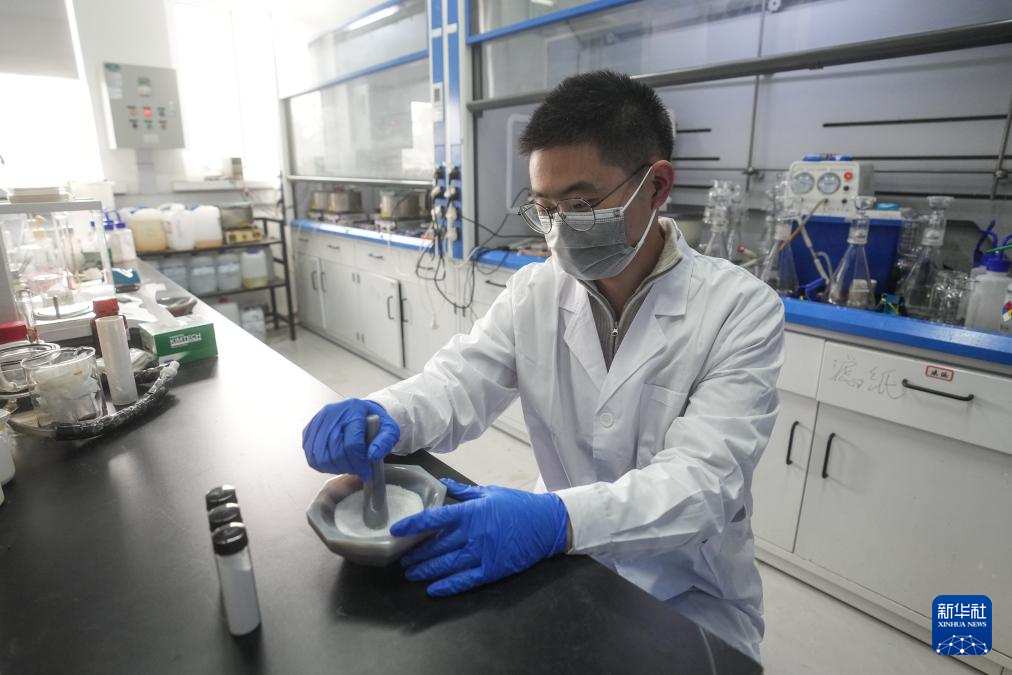 4月7日,在中國科學院金屬研究所沈陽材料科學國家研究中心實驗室,科研人員在研磨改造后的半導體光催化材料二氧化鈦。