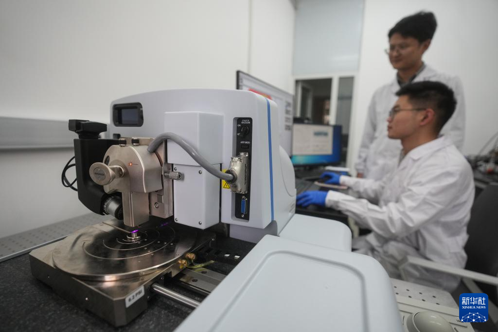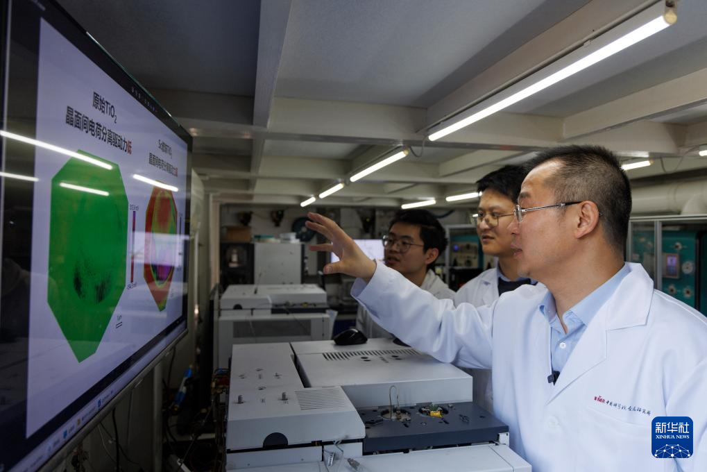 4月7日,在中國科學院金屬研究所沈陽材料科學國家研究中心實驗室,科研人員在檢測改造后的半導體光催化材料二氧化鈦樣品。
