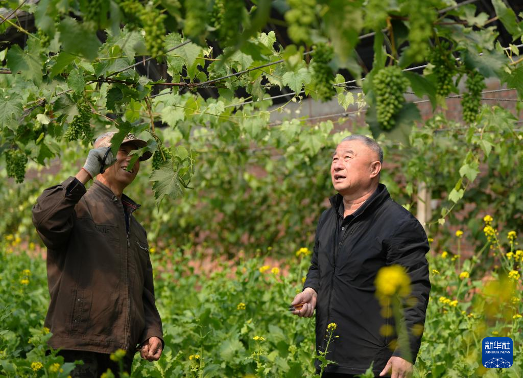 4月15日,在遼寧省阜新蒙古族自治縣于寺鎮官營子村的特色水果暖棚,村民在修剪葡萄枝。