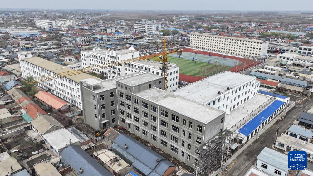 這是4月16日拍攝的海城市牛莊高級中學實驗樓工程建設項目現場(無人機照片)。