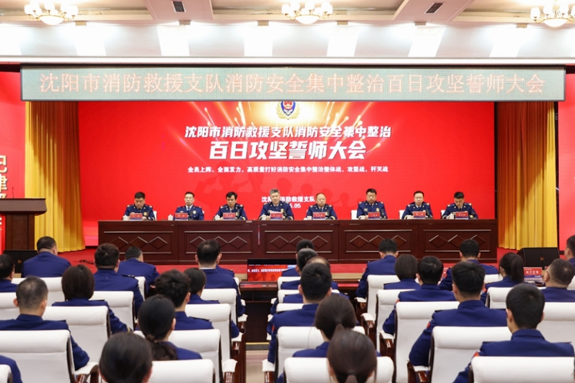 5月9日,沈陽市消防救援支隊召開消防安全集中整治百日攻堅誓師大會。對集中整治任務方案及“業務大培訓、能力大提升”方案進行解讀,相關處室、基層大隊主官及防火監督員、消防救援站主官和消防員代表分別做表態發言。