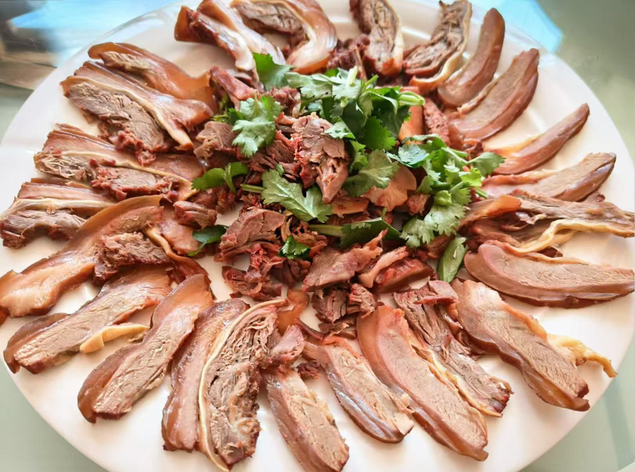 聯合湯驢肉是非常有名的傳統菜品,它以帶皮的驢肉為主要食材,經過十幾道工序加工,首先要保證湯鍋的干凈度,然后精心挑選毛驢進行加工,再配多種調料熬湯,用小火燜煮,燜煮的過程中一定掌握好火候,出鍋后瀝凈湯汁,晾涼最后切成薄片,搭配上蒜醬上桌,這道人間美味才算完美。聯合湯驢肉特點:色澤鮮亮、層次分明,驢皮彈糯、肉質鮮嫩,入口咸香、回味悠長。