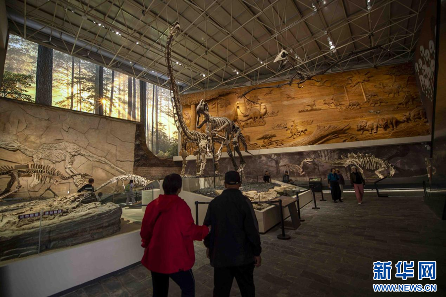圖為游客在遼寧朝陽古生物化石博物館內參觀。新華網發