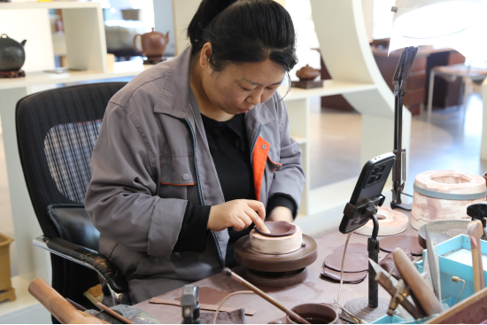 喀左縣高度重視紫砂陶瓷高端技術人才和工藝新人的培養,通過招才引智、加強培訓、聯合辦學等舉措,不斷發展壯大紫陶從業人才隊伍。當地引進宜興、景德鎮等地多位工藝美術大師,通過以師帶徒、以老帶新等方式,提高紫陶文化產業工藝技術水平。同時,注重培養本土人才。喀左北陶紫砂工作室藝術總監、非遺傳承人艾雅芝,先后創辦喀左紫砂非遺工坊、北陶紫砂技術培訓學校和青年創業孵化基地,其中北陶紫砂技術培訓學校免費培訓紫砂產業人才1000多人次。在喀左,像艾雅芝一樣的紫陶產業直接從業人員約1500人,具有職稱資格技術人員300余人、省級工藝美術大師6人,紫陶上下游產業從業人員合計1萬余人。