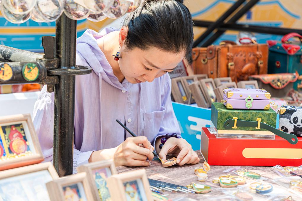 劉氏回陽膏推出非遺健康飲,李氏糖人吸引親子體驗互動,伊爾根覺羅剪紙和宋氏章牌浮雕則通過衍生品展現非遺的現代生命力……這些傳統項目以更貼近年輕人的方式“落地”商業街區,成為打卡熱點?!胺沁z不再是漸行漸遠的老手藝,而是能玩、能嘗、能帶走的潮流體驗?!币晃粎⑴c活動的游客說。